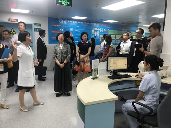 食物及衞生局局長陳肇始教授於八月八日下午率領一百人代表團抵達深圳考察,加強粵港澳大灣區在醫療衞生領域的交流與合作。圖示陳肇始教授(右二)及考察團成員參觀北京大學深圳醫院。