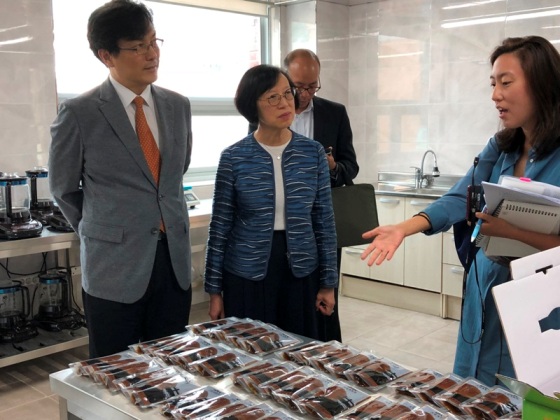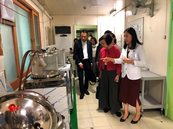 食物及衞生局局長陳肇始教授(左二)今日(九月七日)率領代表團參觀位於首爾的國立再活院的煎藥室。