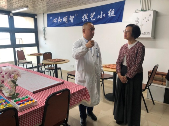 食物及衞生局局長陳肇始教授今日(九月五日)率領代表團訪問上海。圖示陳肇始教授(右)參觀上海中醫藥大學附屬龍華醫院的腫瘤科病房休息室。