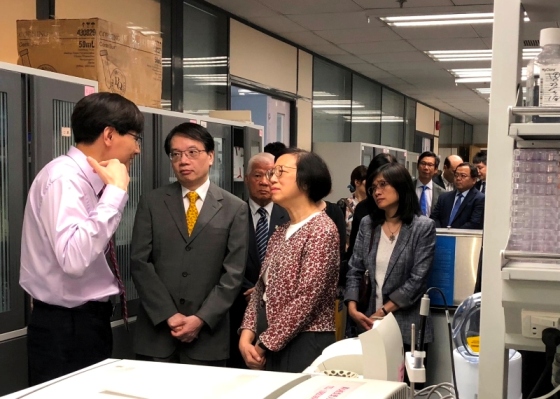食物及衞生局局長陳肇始教授今日(九月五日)率領代表團訪問上海。圖示陳肇始教授(右二)及代表團參觀上海中醫藥大學附屬龍華醫院的中醫腫瘤硏究所。旁為食物及衞生局常任秘書長(衞生)謝曼怡(右一)和中醫醫院發展計劃辦事處總監張偉麟醫生(左二)。