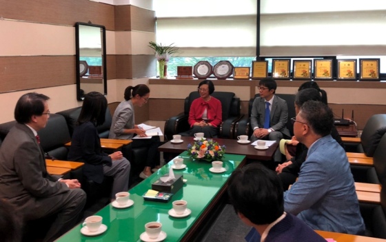 食物及衞生局局長陳肇始教授(左四)今日(九月六日)率領代表團從上海轉抵首爾,與大韓韓醫師協會主席崔赫鏞(左五)會面,就兩地在醫療方面的事宜交流意見。食物及衞生局常任秘書長(衞生)謝曼怡和中醫醫院發展計劃辦事處總監張偉麟醫生亦有出席。