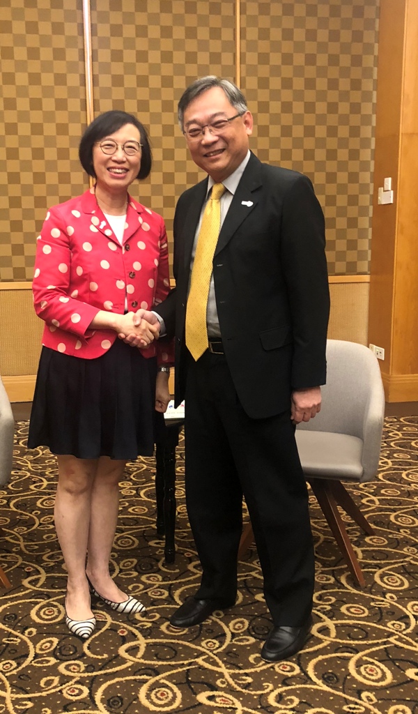 食物及衞生局局長陳肇始教授今日(十一月二十六日)在新加坡出席對抗糖尿病部長會議。陳肇始教授(右)在出席會議期間與世界衞生組織非傳染性疾病和精神衞生事務助理總幹事Svetlana Akselrod博士會面。