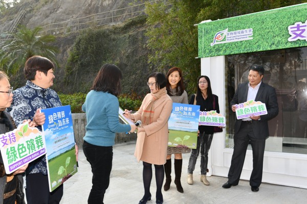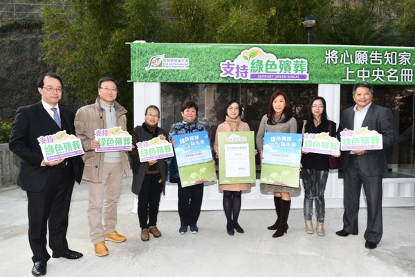 食物及衞生局局長陳肇始教授(右四)和食物及環境衞生諮詢委員會轄下綠色殯葬及相關事宜工作小組今日(一月二十二日)到訪新葵涌紀念花園。他們鼓勵市民簽署名冊,並推廣綠色殯葬。