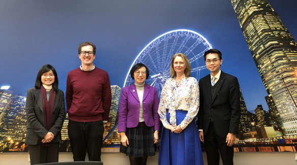 食物及衞生局局長陳肇始教授今日(倫敦時間一月九日)繼續訪問英國倫敦,與參與10萬基因組計劃的病人組織Genetic Alliance UK 的高層管理人員會面。圖示陳肇始教授(中)與Genetic Allinace行政總裁Dr Jayne Spink(右二)及政策主管Dr Nick Meade(左二 ) 會面。旁為食物及衞生局常任秘書長(衞生)謝曼怡(左一)。