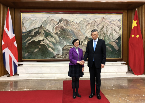 食物及衞生局局長陳肇始教授今日(倫敦時間一月九日)在英國倫敦禮節性拜訪中國駐英國大使劉曉明(右)。