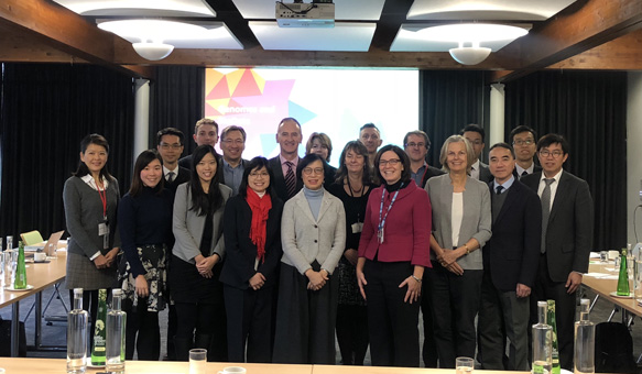 食物及衞生局局長陳肇始教授(前排中)今日(倫敦時間一月十日)展開最後一天訪問英國行程,到訪位於Hinxton的Wellcome Genome Campus,與參與10萬基因組計劃不同階段的專家會面。旁為食物及衞生局常任秘書長(衞生)謝曼怡(前排左四)。