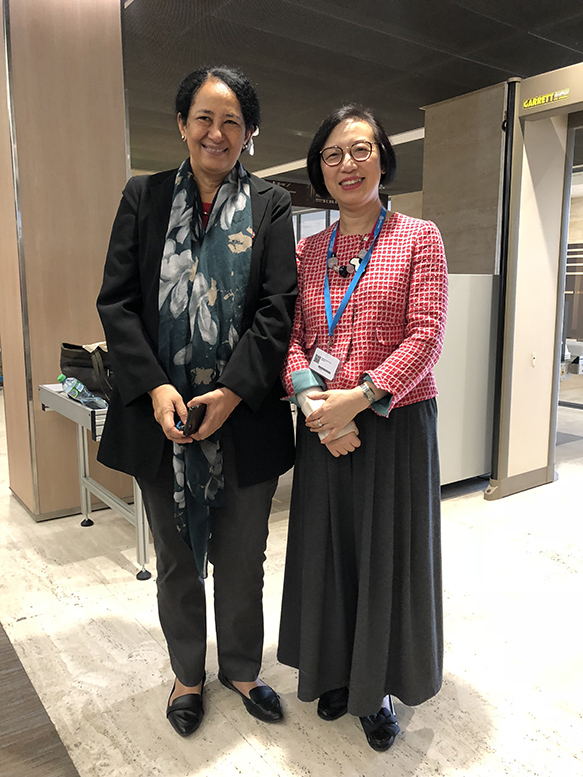 食物及衞生局局長陳肇始教授(右)今日(日內瓦時間五月二十一日)繼續在瑞士日內瓦出席世界衞生組織(世衞)第七十二屆世界衞生大會,並藉此機會與其他會員國的高層衞生官員就衞生事宜作交流。圖示陳肇始教授與世衞首席護士Elizabeth Iro合照。