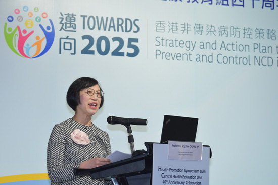 The Secretary for Food and Health, Professor Sophia Chan, speaks at the opening ceremony of the Health Promotion Symposium cum Central Health Education Unit 40th Anniversary Celebration on May 4.