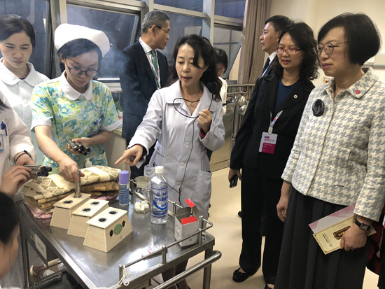The Secretary for Food and Health, Professor Sophia Chan, accompanied the Chief Executive, Mrs Carrie Lam, to lead a delegation to visit Sichuan from May 11-12. Photo shows Professor Chan (second left) and the delegation visiting the Sichuan-Hong Kong Rehabilitation Centre. Looking on is the Chief Executive of the Hospital Authority, Dr Leung Pak-yin (second right).
