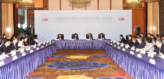 The Chief Executive, Mrs Carrie Lam (second left), speaks at the high-level meeting cum First Plenary of Hong Kong-Sichuan Co-operation Conference in Chengdu on May 11. Also pictured are the Secretary of the CPC Sichuan Provincial Committee, Mr Peng Qinghua (second right); the Director of the Hong Kong and Macao Affairs Office of the State Council, Mr Zhang Xiaoming (first right); the Director of the Liaison Office of the Central People's Government in the Hong Kong Special Administrative Region, Mr Wang Zhimin (first left).