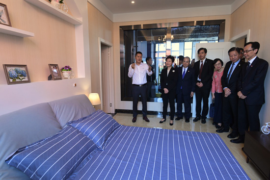 The Chief Executive, Mrs Carrie Lam, visited the University of Electronic Science and Technology of China (UESTC) in Chengdu on May 12. Photo shows (from second left) Mrs Lam; the Chief Secretary for Administration, Mr Matthew Cheung Kin-chung; the Deputy Secretary-General of the Sichuan Provincial Government, Mr Chen Lijiang; the Secretary for Food and Health, Professor Sophia Chan; the Party Secretary of UESTC, Mr Wang Yafei; and the Secretary for Constitutional and Mainland Affairs, Mr Patrick Nip, receiving a briefing on a smart home system.