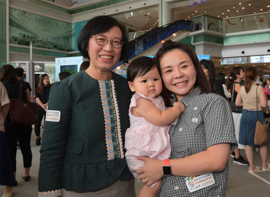 The Secretary for Food and Health, Professor Sophia Chan (left), is pictured with a winner of World Breastfeeding Week (WBW) 2018's photo competition at a celebration event for WBW 2018 on July 26.