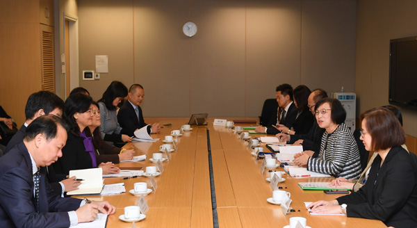 The Secretary for Food and Health of the Hong Kong Special Administrative Region Government, Professor Sophia Chan, and officers from the Food and Health Bureau and the Hospital Authority met with Party Group Member of the National Health Commission cum Party Secretary and Vice Commissioner of the National Administration of Traditional Chinese Medicine, Professor Yu Yanhong, and members of her delegation at the Central Government Offices this morning (October 26) to discuss matters relating to the development and co-operation of Chinese medicine.