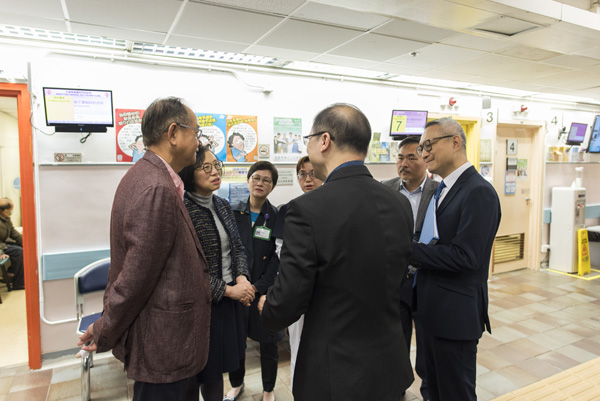 The Secretary for Food and Health, Professor Sophia Chan visited Sai Kung District today (February 19). Photo shows Professor Chan (second left) visiting the Mona Fong General Out-patient Clinic in Sai Kung to learn more about its services and facilities.