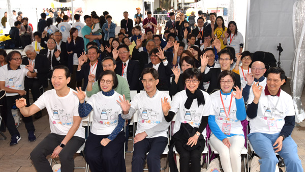 The Secretary for Food and Health, Professor Sophia Chan, and the Chairman of the Committee on Reduction of Salt and Sugar in Food, Mr Bernard Charnwut Chan, attended a promotional event entitled "Salt & Sugar Reduction Day" today (February 23). Photo shows (first row from left) Mr Chan; Professor Chan; the Permanent Secretary for Food and Health (Food), Mr Philip Yung; the Director of Food and Environmental Hygiene, Miss Vivian Lau; the Director of Health, Dr Constance Chan; and the Controller of the Centre for Food Safety, Dr Ho Yuk-yin, accepting the challenge of reducing salt and sugar intake.