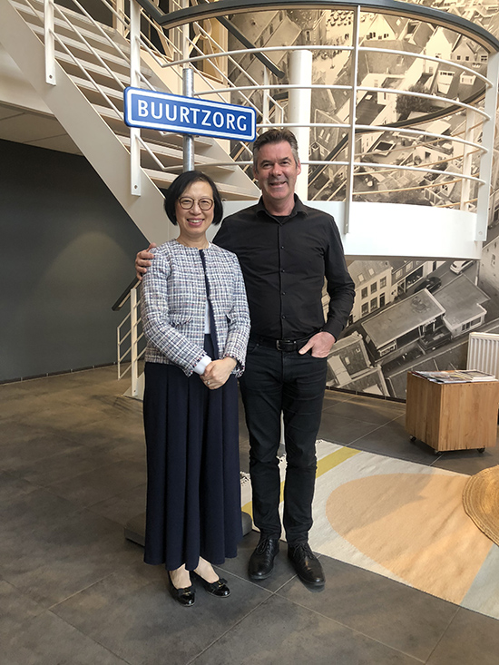 The Secretary for Food and Health, Professor Sophia Chan, today (May 17, Netherlands time) visited the Netherlands to learn more about the country's latest developments in primary healthcare services. Professor Chan is pictured with the Chief Executive Officer of Buurtzorg Nederland, Mr Josephus Bernardus Imelda de Blok (right).