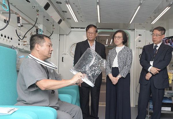 The Secretary for Food and Health, Professor Sophia Chan (second right), today (September 5) visits the hyperbaric oxygen therapy centre at the Pamela Youde Nethersole Eastern Hospital.