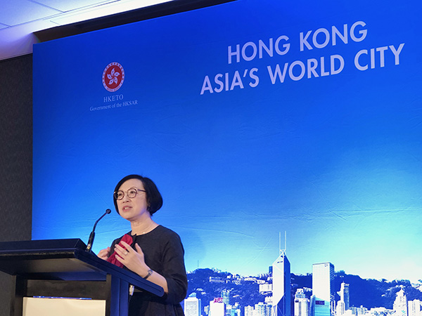 The Secretary for Food and Health, Professor Sophia Chan, today (September 16) delivers a welcoming speech at a gathering with Hong Kong people and healthcare professionals living in Melbourne, Australia.