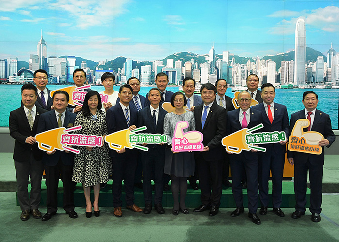 Representatives of associations from doctors, Chinese medicine practitioners and charitable organisations today (December 18) attended a press conference on seasonal influenza to show their support. Photo shows (front row, from left) the Chairman of the Board of Directors (BoD) of Yan Chai Hospital, Mr Vincent Wong; the Chairperson of the BoD of Yan Oi Tong, Mr Lin Cheuk-fung; the Chairman of Lok Sin Tong Benevolent Society, Kowloon, Dr Yang Xiaoling; the Consultant Chinese Medicine Practitioner, Food and Health Bureau, Dr Ng Chi-sun; the Controller of the Centre for Health Protection of the Department of Health, Dr Wong Ka-hing; the Secretary for Food and Health, Professor Sophia Chan; the Director (Cluster Services) of the Hospital Authority, Dr Deacons Yeung; the Chairman of the Po Leung Kuk BoD, Mr Ma Ching-nam; the 4th Vice-Chairman of the BoD of Tung Wah Group of Hospitals, Mr Herman Wai; the Chairman of the BoD of Pok Oi Hospital, Mr Ng Kam-ching; (back row, from left) vice-chairmen of HK Registered Chinese Medicine Practitioners Association (HKRCMPA) Professor Lin Zhixiu, Mr Gan Pei-tzeng and Dr Lam Pui-yan; the Chairman of HKRCMPA, Dr Chan Wing-kwong; the Chairman of the Hong Kong Private Hospitals Association, Dr William Ho; the President of the Hong Kong Doctors Union, Dr Henry Yeung; the President of the Hong Kong Medical Association, Dr Ho Chung-ping; and the President of the Association of Licentiates of Medical Council of Hong Kong, Dr Cheung Hon-ming, at the press conference.
