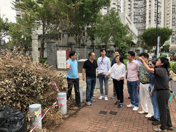 The Secretary for Food and Health, Professor Sophia Chan (front row, fourth left) visited Yuen Long this morning (September 25) to inspect the cleaning work following the passage of typhoon Mangkhut. Professor Chan thanked the staff of the Food and Environmental Hygiene Department and its contract workers for their continuous efforts in a bid to restore the environmental hygiene of the city as soon as possible.